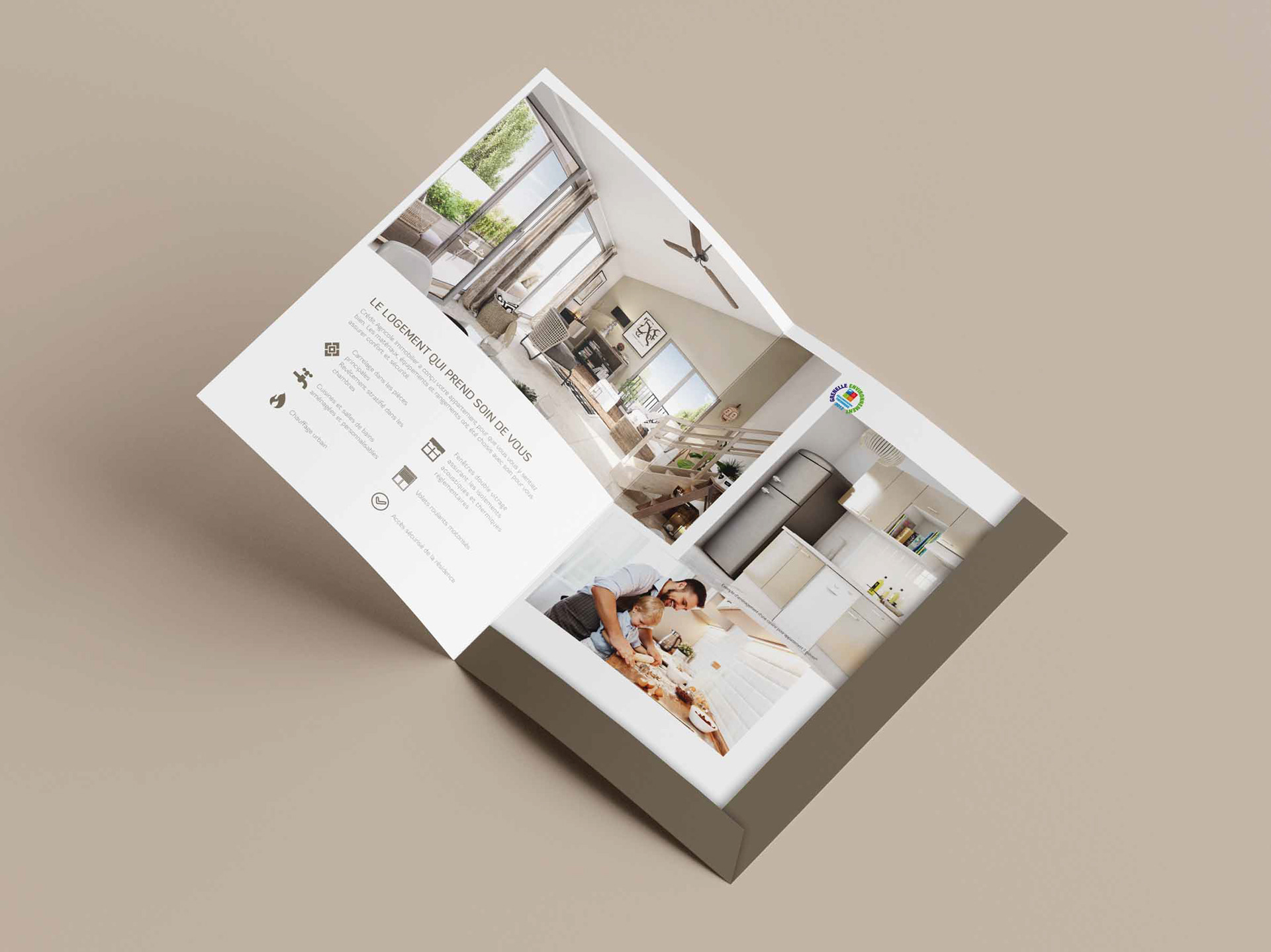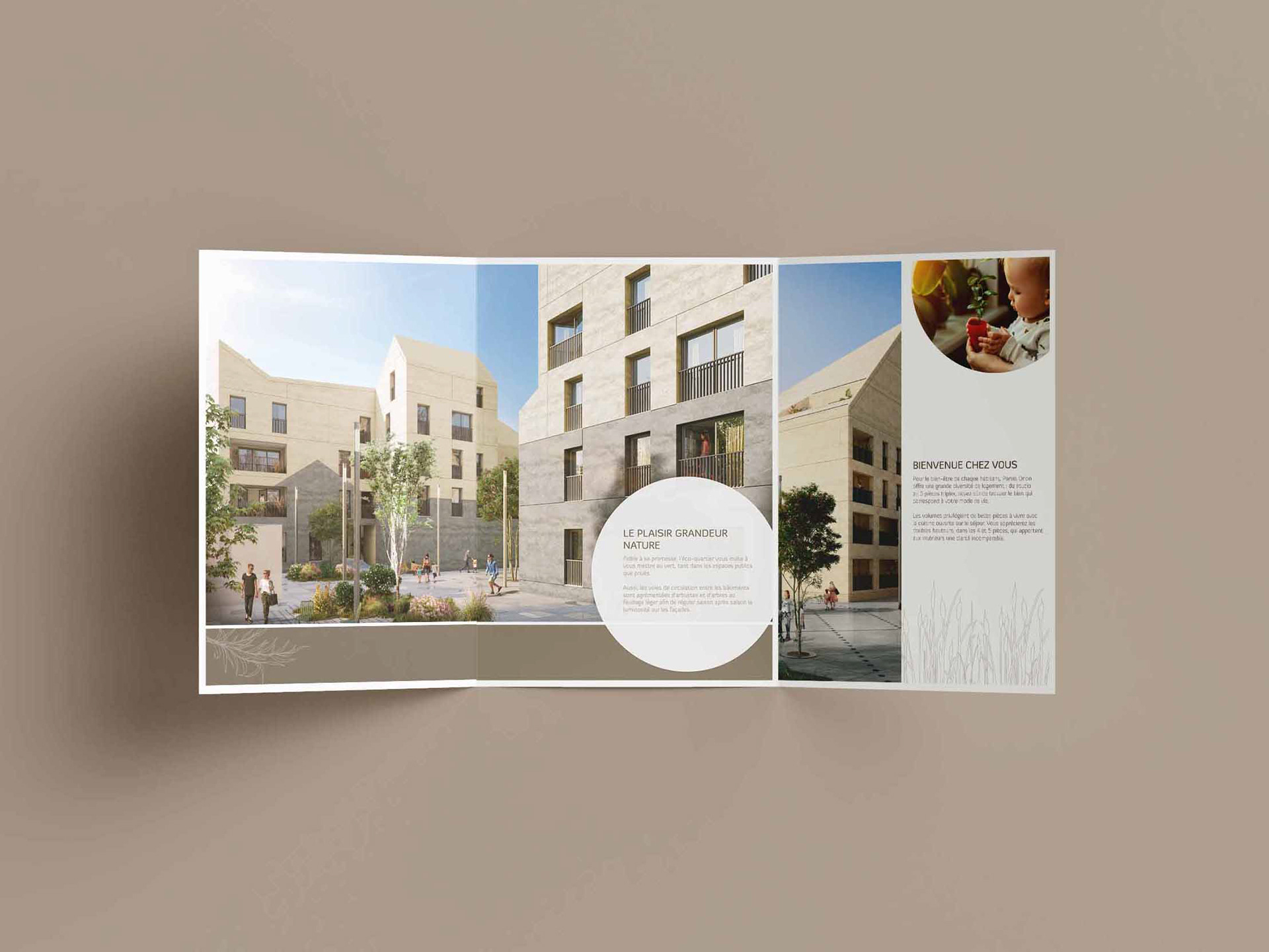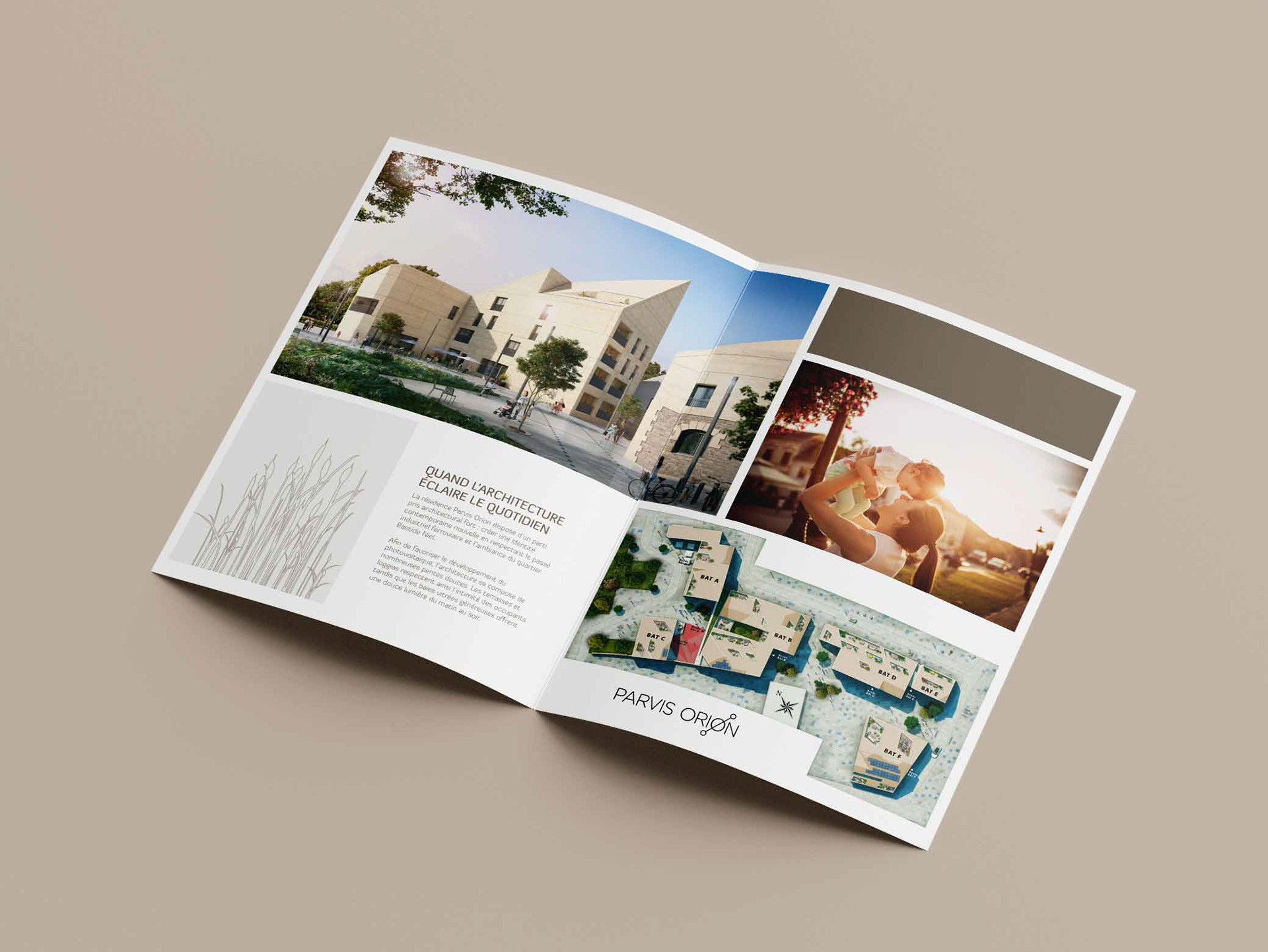 Création de l'univers graphique pour Crédit Agricole Immobilier destiné à la communication du programme Parvis Orion. Ainsi que la mise en page de la plaquette.