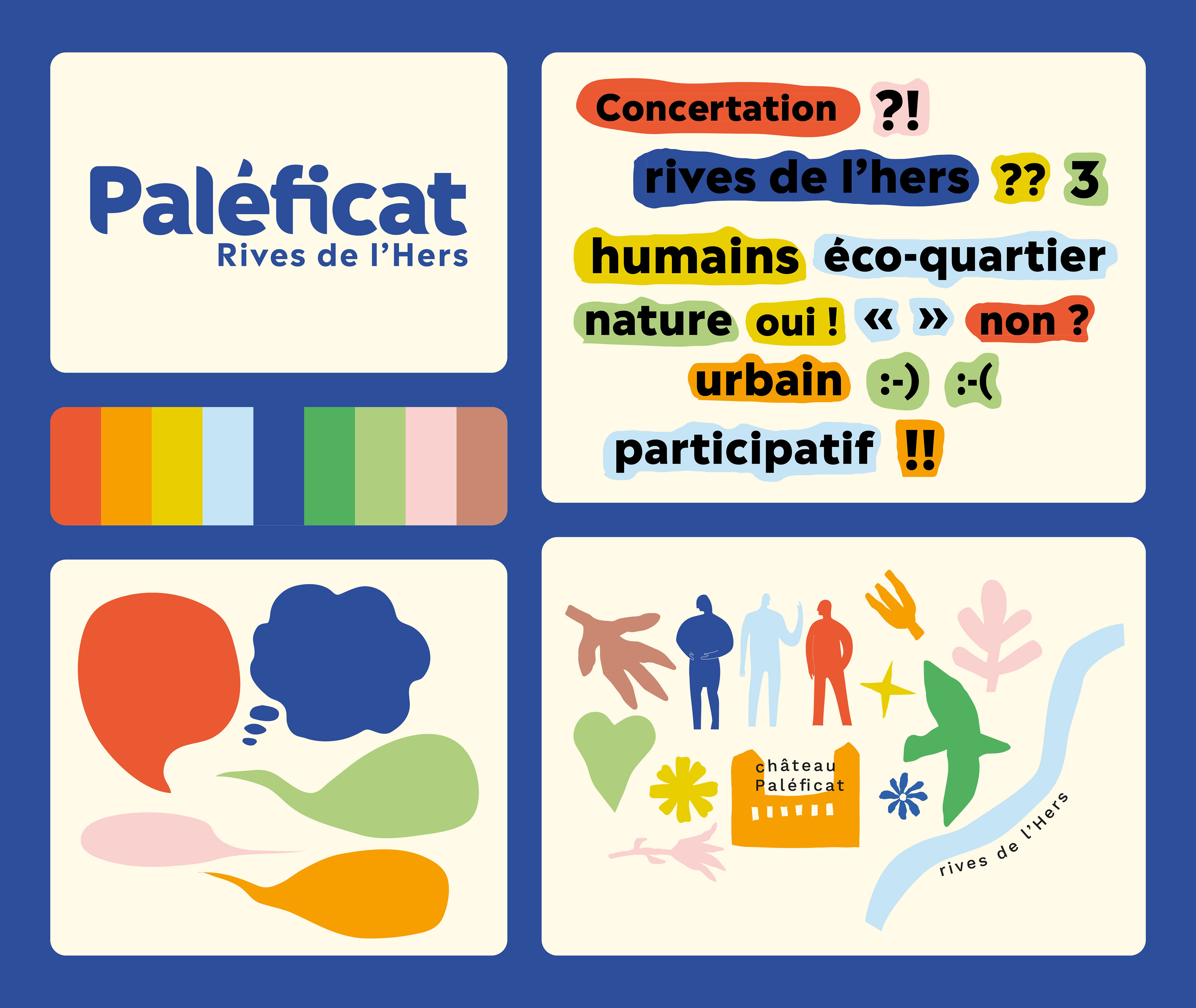 Création d'un univers graphique pour l'opérateur public Oppidea, destiné à l'opération de concertation publique du futur projet Paléficat avec les habitants.